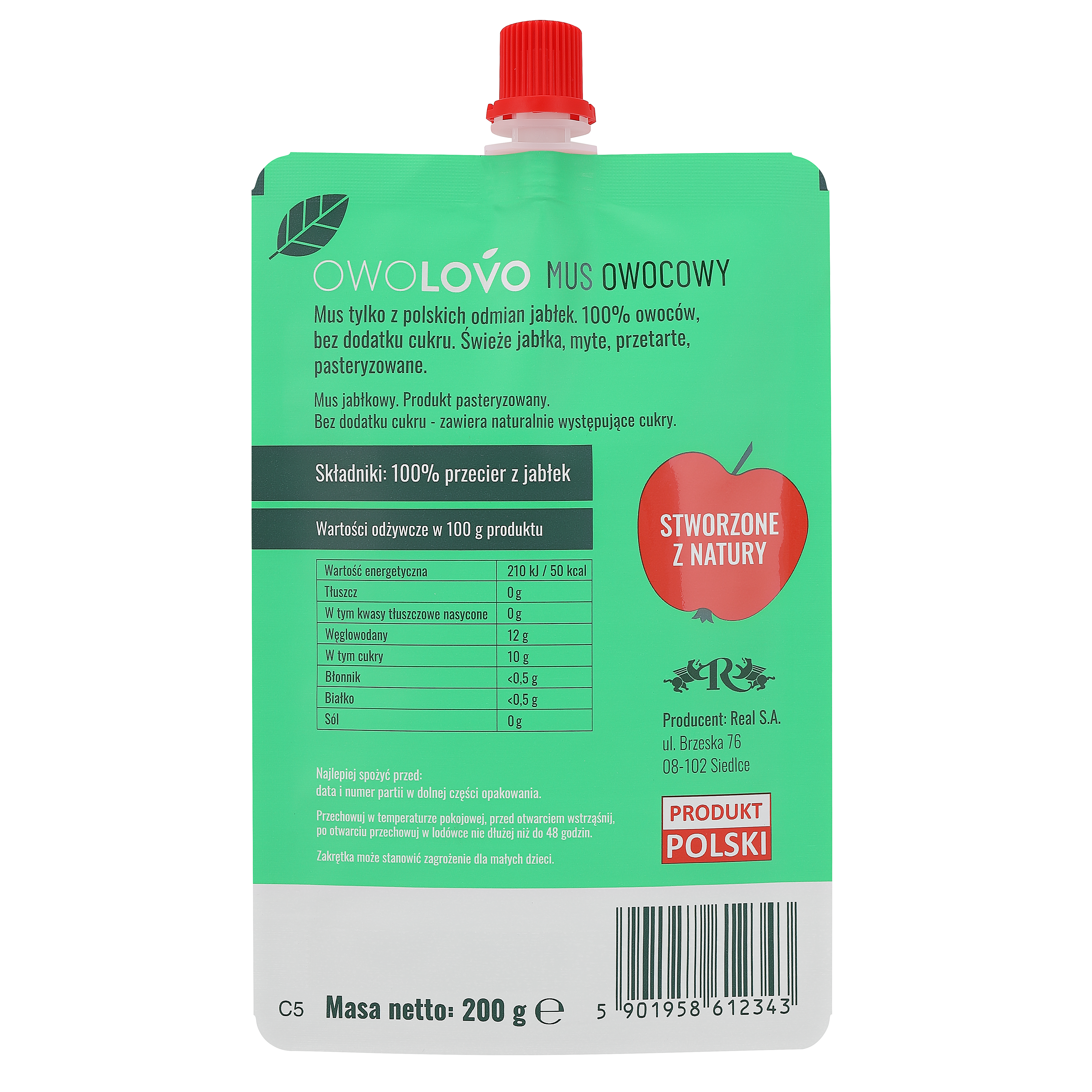JABŁKOWO OWOLOVO -MUS JABŁKOWY 200g