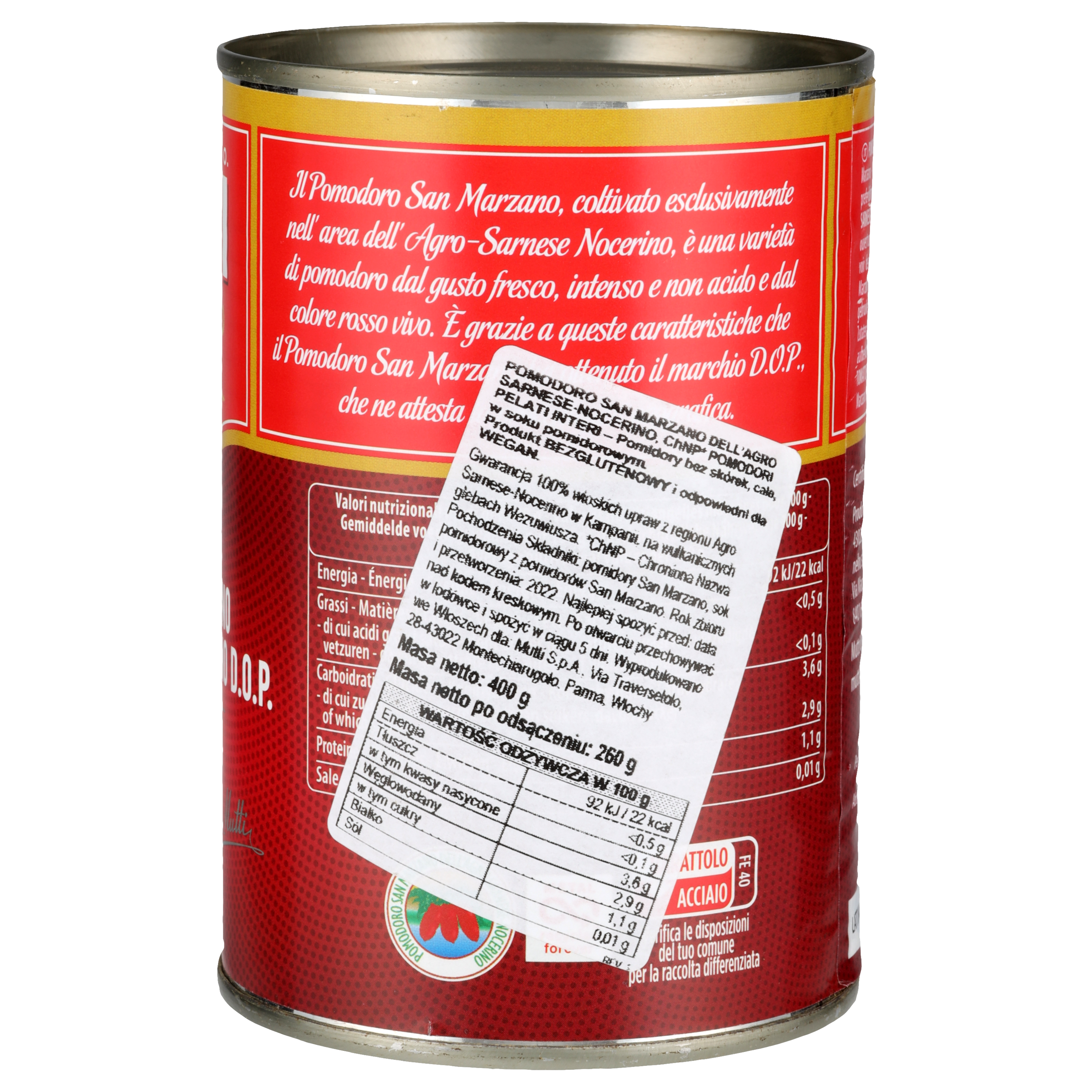 Wyjątkowa odmiana pomidorów uprawiana wyłącznie w rejonie Agro Sarnese Nocerino w Kampanii, na wulkanicznych glebach u stóp Wezuwiusza. Wolne od GMO.