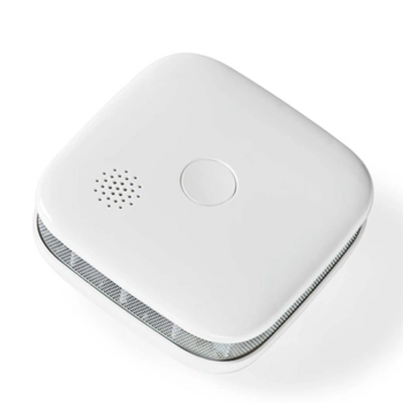 Chroń swój dom z inteligentnym czujnikiem dymu Nedis! Wykrywa zagrożenie i automatycznie uruchamia alarm o natężeniu 85 dB. Dzięki kompaktowym wymiarom (76 x 76 x 28,5 mm) i bezprzewodowej konstrukcji możesz zamontować go w dowolnym miejscu. Fotoelektryczny detektor eliminuje fałszywe alarmy, a bateria CR123A zapewnia do 2 lat działania. Wbudowana funkcja samokontroli i sygnalizacja niskiego napięcia gwarantują niezawodność. Połącz go z aplikacją Nedis® SmartLife i twórz automatyzacje dla pełnej ochrony. Szybka instalacja – zestaw zawiera śruby i taśmę samoprzylepną.