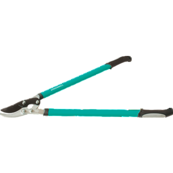 Nożyce do gałęzi, mechanizm dźwigni, ostrze utwardzane, powlekane teflonem, stalowe ramiona, ergonomiczne uchwyty, długość 73 cm.