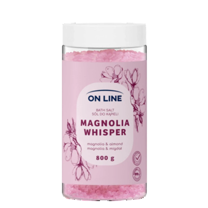 ON LINE Magnolia Whisper sól do kąpieli wzbogacona kolagenem, mleczkiem migdałowym oraz ekstraktem z magnolii. Pielęgnuje i rewitalizuje Twoją skórę. Wyjątkowy zapach, który odpręża.