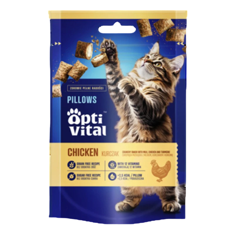 OptiVital Przekąska - Uzupełniająca karma dla dorosłych kotów. Poduszeczki bezzbożowe, z kurczakiem i kurkumą 60g