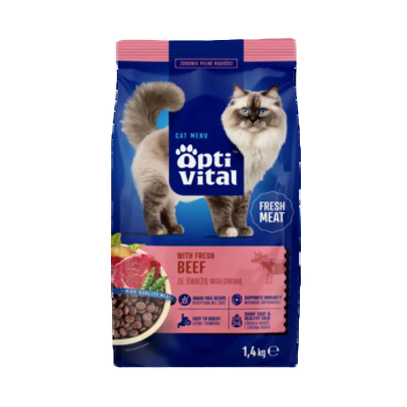 OptiVital karma sucha- pełnoporcjowa karma dla dorosłych kotów FM z wołowiną 1,4 kg