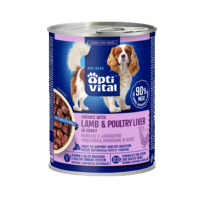 OptiVital puszka - soczyste kawałki dla dorosłych psów z jagnięciną i wątróbką drobiową w sosie 415g