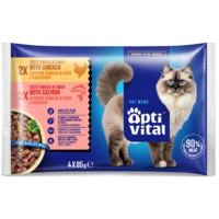 OptiVital saszetki - pełnoporcjowa karma dla dorosłych kotów. Z kurczakiem i łososiem 4x85g