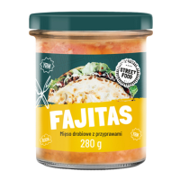 Najpopularniejsze smaki kuchni świata zamknięte w poręcznym szklanym opakowaniu. Cała linia asortymentowa Pamapol by Street Food jest zgodna z dużym zainteresowaniem konsumentów kuchniami świata w formie szybkich dań Street Food. Kurczak Fajitas to idealna propozycja do spożycia na zimno lub ciepło jako dodatek do kanapek, wrapów, tortilli czy burgerów.
