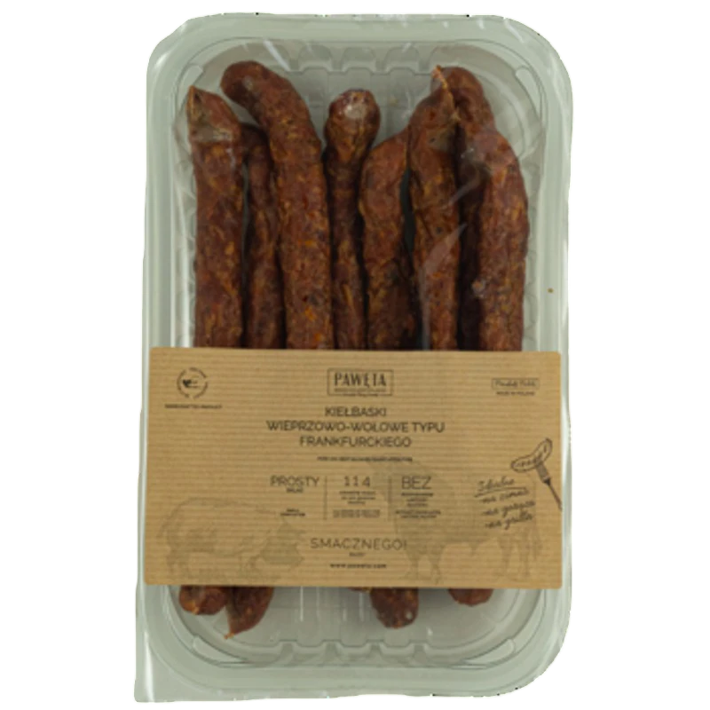 Poznaj wyjątkowy smak kiełbasek wieprzowo-wołowych typu frankfurckiego Pawęta! Stworzone z najlepszej jakości mięsa, nasze kiełbaski łączą soczystość wieprzowiny z delikatnością wołowiny, oferując niezrównany smak i aromat. Dzięki starannie opracowanej recepturze oraz wyselekcjonowanym przyprawom, kiełbaski Pawęta doskonale sprawdzą się na grillach, piknikach i rodzinnych spotkaniach. Każdy kęs to prawdziwa uczta, która zadowoli nawet najbardziej wymagających smakoszy. Wybierz kiełbaski Pawęta i ciesz się chwilami pełnymi smaku!