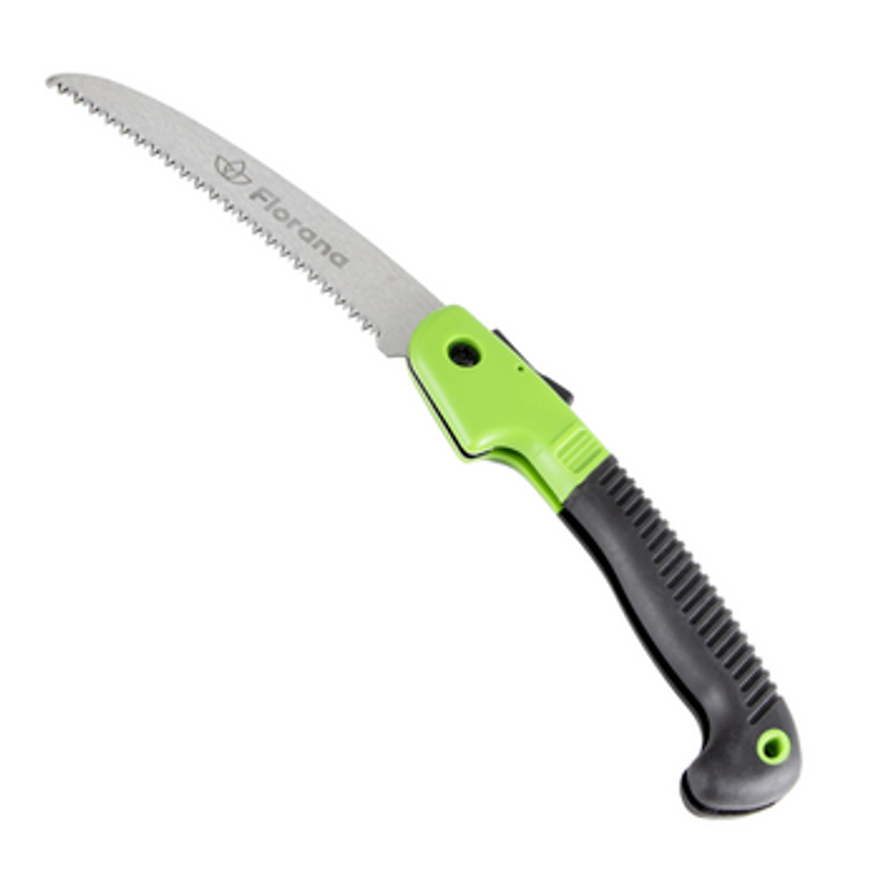 Piła ogrodowa Florana. Idealna do cięcia grubych gałęzi. Blokowany brzeszczot wykonany ze stali węglowej, uchwyt antypoślizgowy. Nadaje się również do płyt gipsowo-kartonowych i rur z tworzyw sztucznych