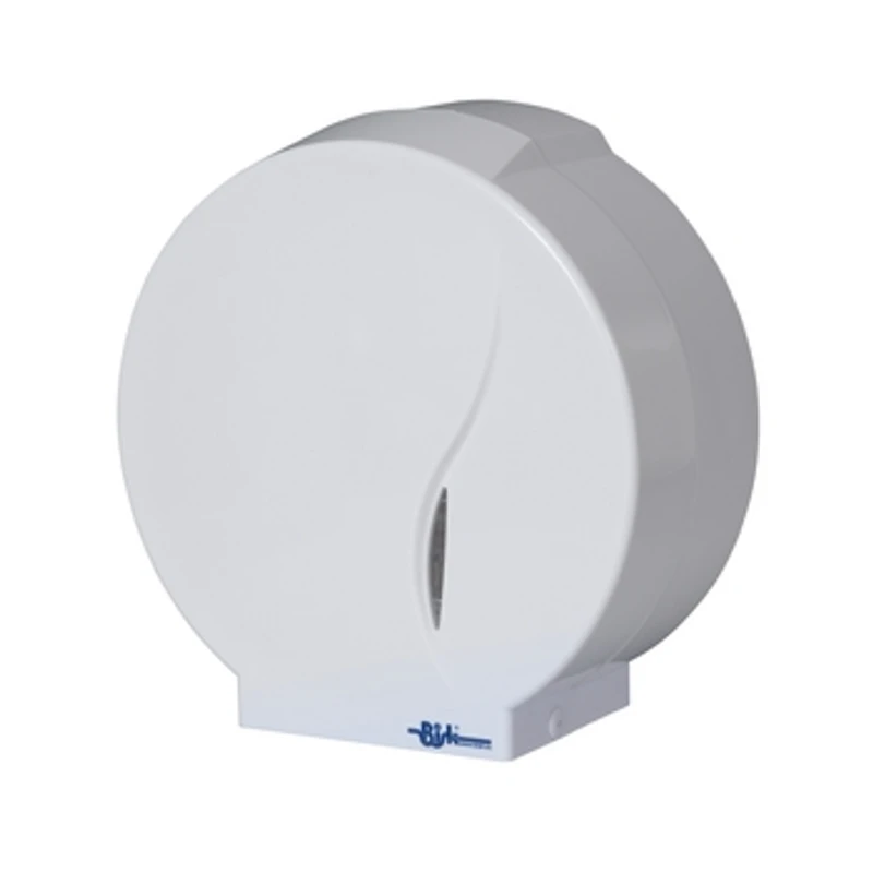 Podajnik na papier toaletowy w rolkach JUMBO. Na rolki papieru toaletowego o średnicy 19 i 23 cm. Otwierany kluczem. Szczególnie polecany w obiektach użyteczności publicznej. Wymiary 270x120x260. Wizjer informuje o ilości papieru.
