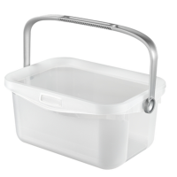 Wielofunkcyjny, półprzezroczysty niebieski pojemnik do przechowywania np. tabletek lub proszku do prania. Wyposażony w ergonomiczną rączkę i wygodne, bezpieczne zamknięcie umili codzienne domowe czynności. Dostępne w dwóch rozmiarach.