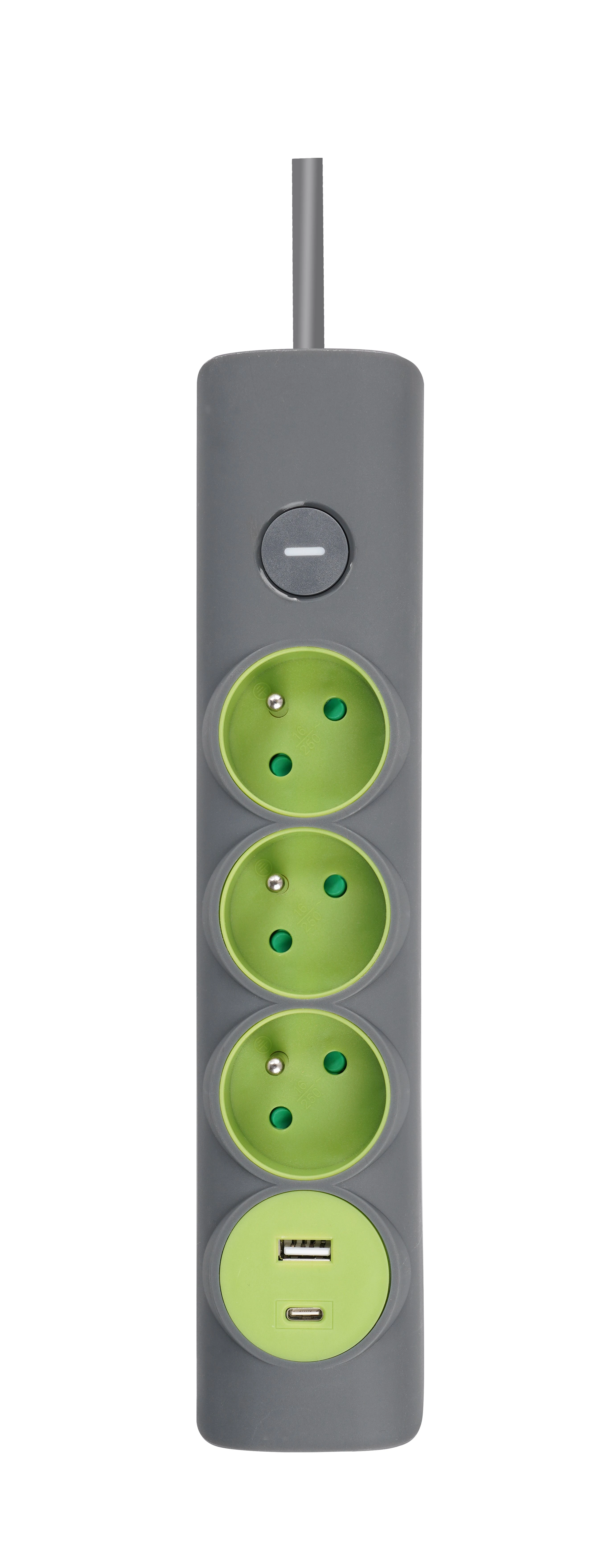 Przedłużacz 3 gniazda z uziemieniem i wyłącznikiem. Przewód o przekroju 3x1,5mm2 i długości 3m . Dodatkowo gniazda USB A i USB C Przedłużacz w kolorze szaro-zielonym. Gniazda z zabezpieczeniem przed dziećmi.
