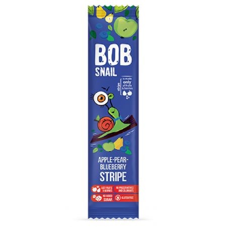 Bob Snail to słodka przekąska z jabłek, gruszek i borówek bez dodatku cukru. Bob Snail ma w składzie tylko owoce. Jest pozbawiona konserwantów i barwników oraz glutenu. Zabawny kształt płaskiej wstążki sprawia, że przekąskę można wygodnie dzielić na porcje w zależności od potrzeby.