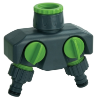 Przyłącze kranowe pozwala na regulację przepływu wody pomiędzy dwoma łącznikami. Jest to możliwe dzięki wygodnym pokrętłom. W zestawie znajdują się dwa łączniki oraz przyłącze.