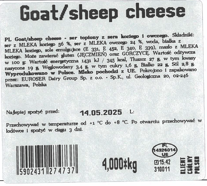 | Adres podmiotu wprowadzającego do obrotu | Nazwa firmy: euroser dairy group ulica i numer: ul. geologiczna 20 kod pocztowy i miasto: 02-246 warszawa pl |
