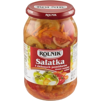 | Składniki | Warzywa w zmiennych proporcjach (pomidor zielony, marchew, papryka cebula), woda, ocet spirytusowy, cukier, sól. |