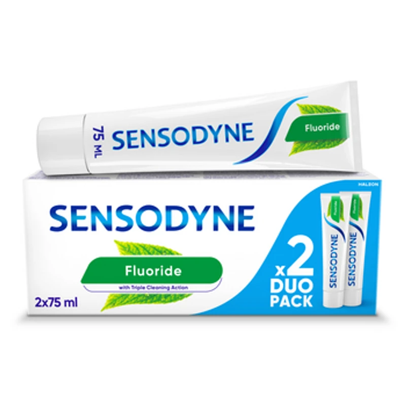 Jeśli podczas spożywania gorących, zimnych, słodkich i kwaśnych pokarmów, a nawet szczotkowania zębów odczuwasz krótki, przenikliwy ból, może to oznaczać, że Twoje zęby są nadwrażliwe. Pasta do zębów Sensodyne Fluoride zawiera zaawansowaną formułę, która chroni przed nadwrażliwością aż do 24 godzin*, a jej skuteczność została potwierdzona klinicznie. Pasta Sensodyne Fluoride łagodzi reakcję zakończeń nerwowych głęboko we wnętrzu zęba, aby zapewnić ulgę, a dzięki starannie dobranym składnikom oferuje również odpowiednią higienę zębów i dziąseł. Skutecznie czyści zęby i usuwa z ich powierzchni nagromadzoną płytkę bakteryjną, a dzięki zawartości fluorku pomaga także wzmacniać szkliwo i chroni je przed działaniem kwasów cukrowych, które są jedną z najczęstszych przyczyn powstawania próchnicy. Sensodyne Fluoride ma również przyjemny, miętowy smak, dzięki któremu możesz cieszyć się długotrwałym uczuciem czystości i świeżości.