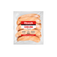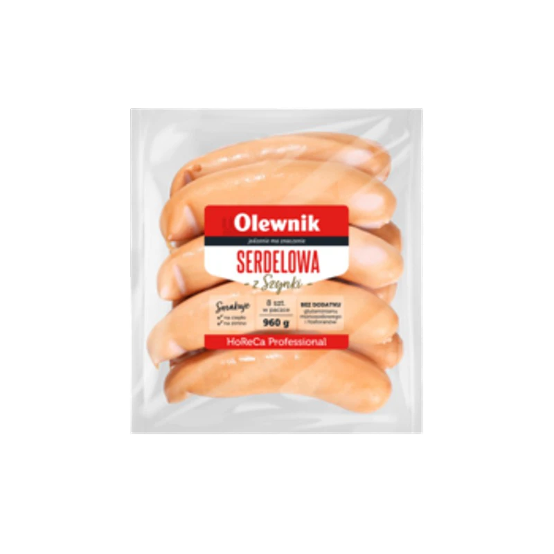 | Składniki | Składniki: mięso wieprzowe z szynki 91%, skrobia ziemniaczana, sól, glukoza, stabilizator: cytryniany sodu; ekstrakty przypraw, aromaty, cukier, przyprawy (w tym gorczyca), przeciwutleniacz: askorbinian sodu; substancja konserwująca: azotyn sodu. osłonka jadalna - jelito wieprzowe. może zawierać: mleko (łącznie z laktozą), seler, soję, zboża zawierające gluten. |