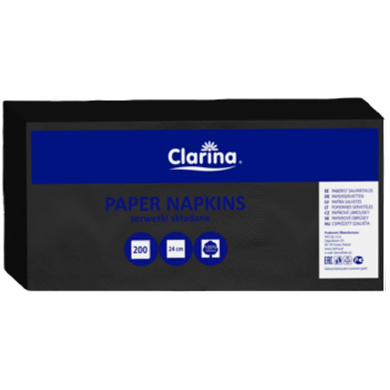 Serwetki gastronomiczne czarne 24x24 200szt 1/4 dwuwarstwowe Clarina