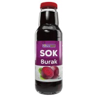 Sok z buraka polskiego o intensywnej czerwonej barwie. Konsystencja klarowna. Smak lekko słodkawy.