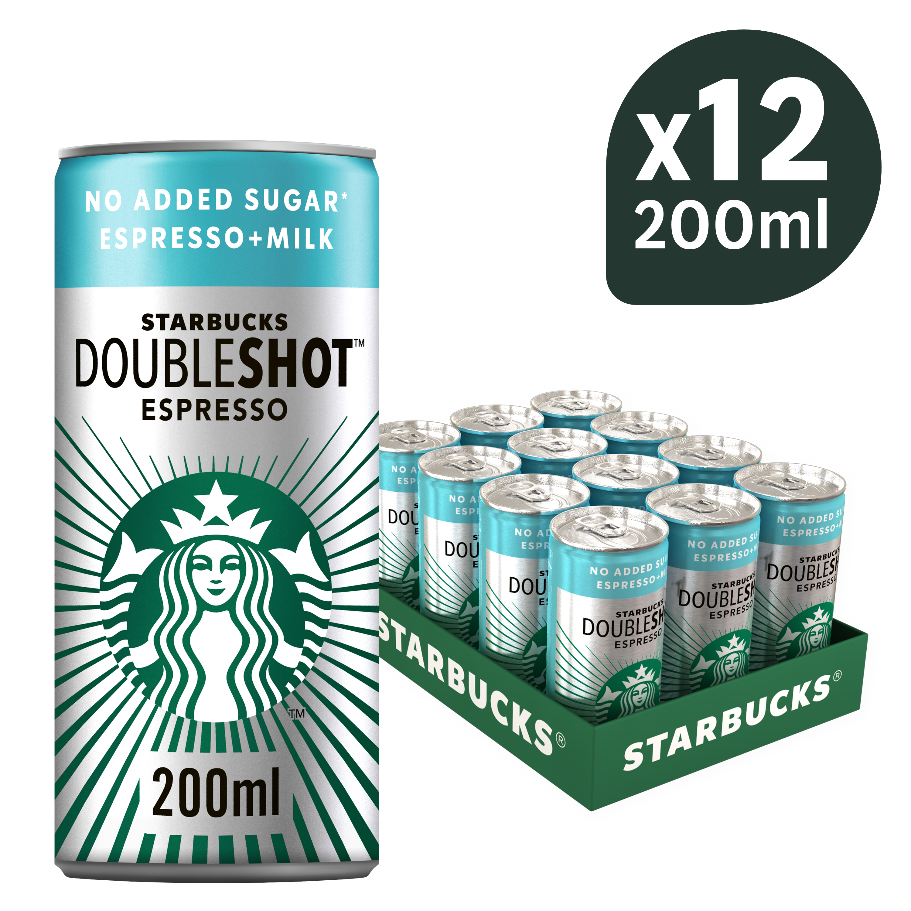 Starbucks Doubleshot® Espresso No Added Sugar łączy w sobie dwie bogate w smaku porcje Fairtrade 100% Arabica Starbucks Espresso i mleko bez dodatku cukrów, co nadaje jej doskonale wyważony, delikatny smak.