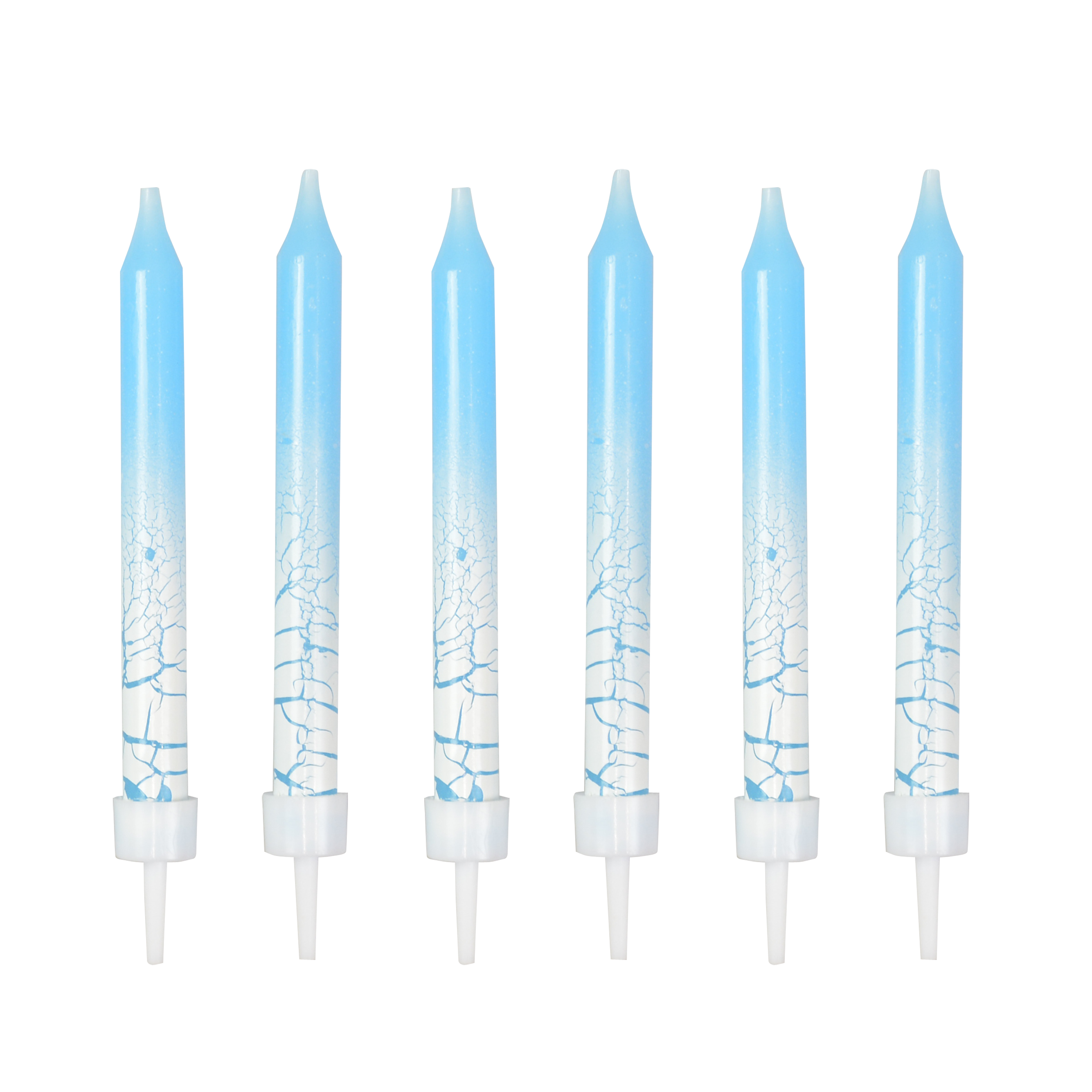 Świeczki urodzinowe z efektem spękania. Wysokość 8 cm. W opakowaniu znajduje się 6 sztuk.