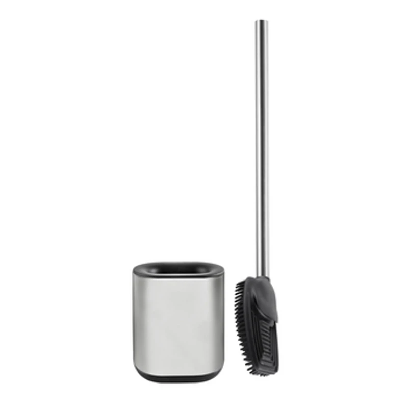 Szczotka toaletowa ze specjalną silikonową, płaską końcówką. Gumowy materiał TPR ułatwia czyszczenie toalety. Silikonowa szczotka do WC jest znacznie praktyczniejsza niż szczotki wykonane z tworzyw sztucznych. Pozwala na lepsze zachowanie higieny toalety oraz samej szczotki. W zestawie znajduje się nowoczesny pojemnik wykonany ze stali nierdzewnej.