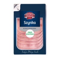 Szynka konserwowa z mięsa wieprzowego, peklowana, parzona, o zwartej konsystencji. Świetnie smakuje podana na kanapce lub jako dodatek do tostów, pizzy oraz koreczków.