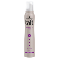 Formuła pianki Taft Perfect Flex z płynną elastyną zapewnia supermocne utrwalenie do 24 godzin i doskonałą elastyczność.