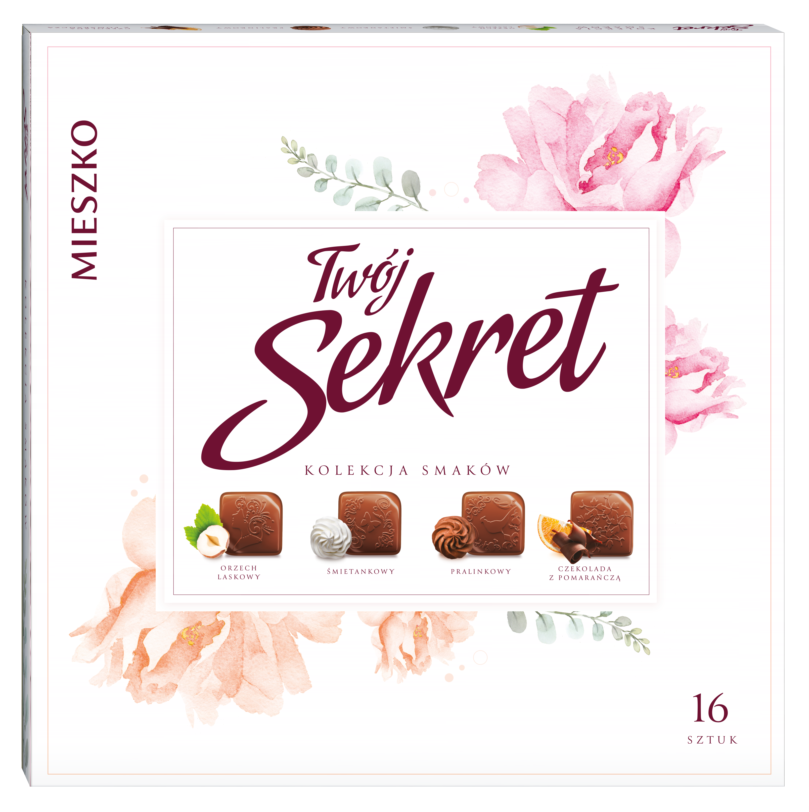 Odkryj kolekcję wyjątkowych smaków i zanurz się w słodkiej przyjemności! Sekretem są delikatne i rozpływające się w ustach nadzienia, które sprawiają, że każda chwila staje się magiczna. W bombonierce znajdziesz zestaw 4 smaków: orzech laskowy, śmietankowy, pralinkowy oraz czekolada z pomarańczą.