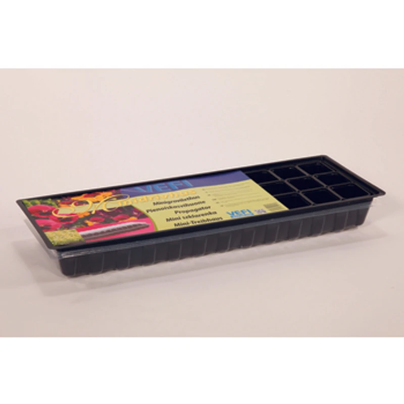 Miniszklarenka 60x20cm. Zestaw zawiera tacę bez otworów, 30 sztuk doniczek o wymiarach 6x6cm. Polecana do uprawy rozsady z nasion lub do ukorzeniania sadzonek.