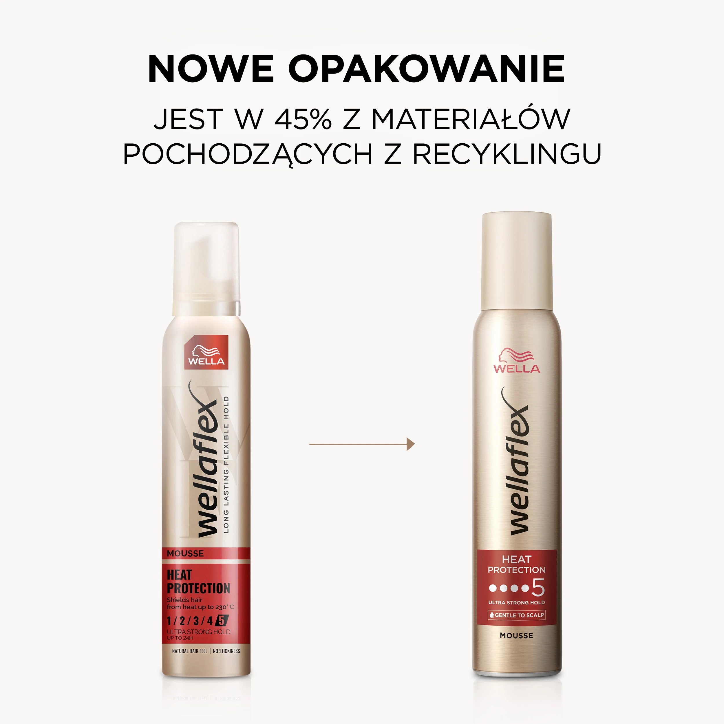 | Krótki opis marketingowy | Utrzymanie fryzury i ochrona przed wysoką temperaturą nigdy nie było łatwiejsze dzięki piance wellaflex heat protection. delikatna dla skóry głowy, przetestowana dermatologicznie pianka do stylizacji włosów dla kobiet, która zapewnia do 24 godzin lekkiego utrwalenia, pomagając jednocześnie chronić włosy przed uszkodzeniami termicznymi. ta pianka nie zawiera silikonów i zapewnia ochronę przed promieniowaniem uv podczas ekspozycji na słońce oraz jest pakowany w 45% z materiałów pochodzących z recyklingu. |