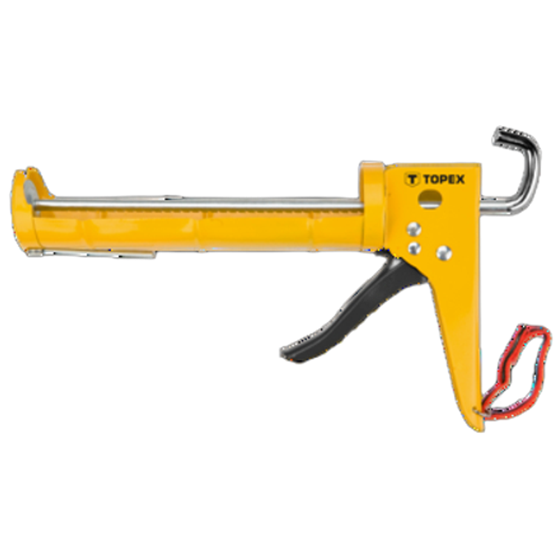 Wyciskacz do tub z silikonem TOPEX (nr ref. 21B235) z grzechotką. Znajduje swoje zastosowanie podczas prac remontowych i wykończeniowych. Korpus oraz spust wykonane z mocnej stali. Pokrycie lakiernicze zabezpiecza przed uszkodzeniami. Marka TOPEX skierowana jest do majsterkowiczów.