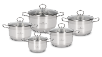 | Zawartość zestawu | 1x garnek 16cm + pokrywka 1.8 litra, 1x garnek 18cm + pokrywka 2.5 litra, 1x garnek 20cm + pokrywka 3.4 litra, 1x garnek 22cm + pokrywka 4.5 litra, 1x garnek 24cm + pokrywka 5.6 litra |