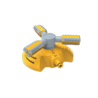 Zraszacz trójramienny na podstawie. Zraszacz obrotowy z trzema zestawami nastawnych dysz na każdym ramieniu umożliwiających regulację zasięgu.