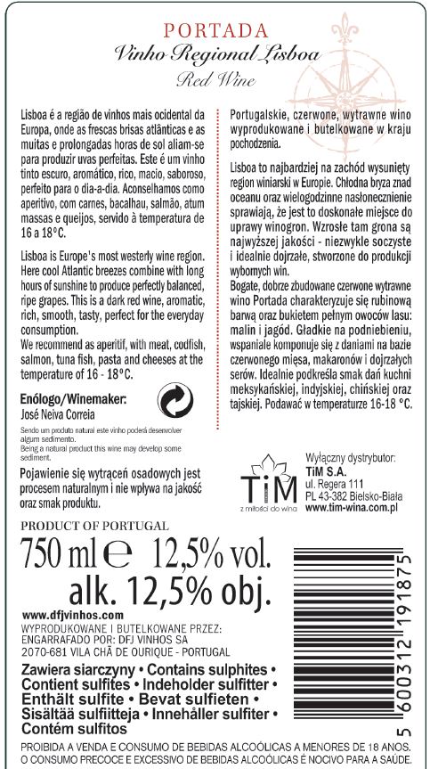 'Portada Lisboa Czerwone Wytrawne 750 ml TiM