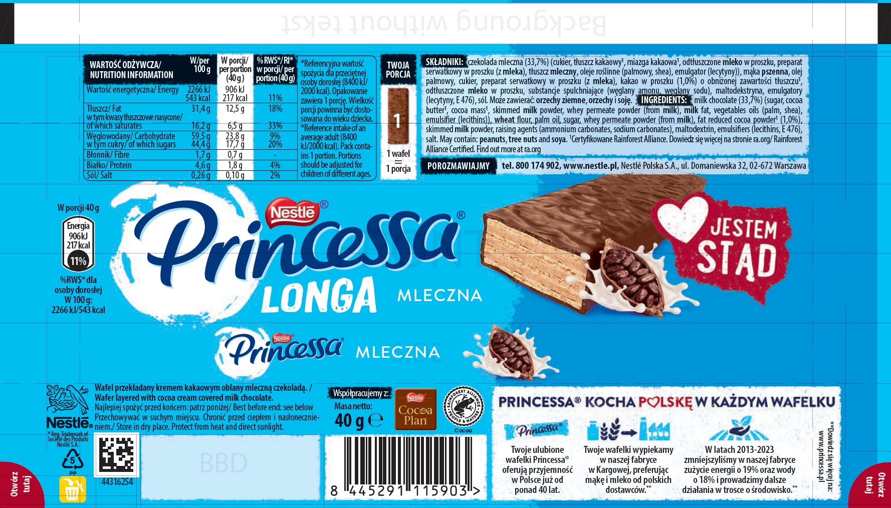 Wafel przekładany kremem orzechowym oblany mleczną czekoladą.