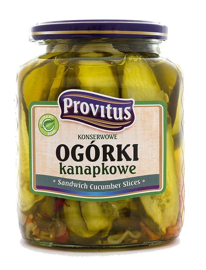 ogórki (48%), ocet spirytusowy, cukier, sól, gorczyca, koper, mieszanka warzyw, przyprawy, ryboflawina – barwnik
