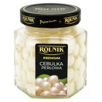 Odkryj delikatny smak każdej Cebulki perłowej Rolnik, zanurzonej w lekkiej, octowej marynacie, która zapewnia im doskonałą chrupkość i słodycz. Małe, białe cebulki z połyskującą skórką, stanowią podstawę pięknie prezentujących się koreczków i fantazyjnych, zimnych płyt oraz wyrazisty dodatek do lekkich sałatek. Cebulki perłowe polecamy także do przyrządzenia oryginalnej salsy pomidorowej.