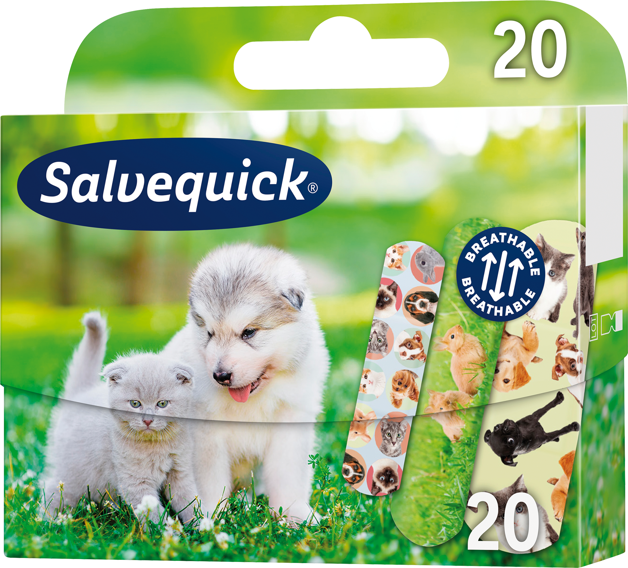Salvequick Animal Planet to zestaw 20 oddychających, elastycznych i wytrzymałych plastrów, odpornych na wodę i bród dla aktywnych dzieci.