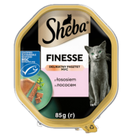 Pełnoporcjowa karma Sheba® Finesse to prawdziwa rozkosz w formie delikatnego pasztetu dla Twojego kociego przyjaciela. Propozycja posiłku z łososiem zachwyci podniebienia nawet najbardziej wymagających kotów. Sekretem mistrzowskiej receptury Sheba® Finesse są wyrafinowane składniki oraz witaminy i minerały. W każdej tacce znajdują się składniki odżywcze, wspierające prawidłowe funkcjonowanie Twojego kota. Pozwól swojemu kotu na kulinarną rozkosz, aby mógł delektować się pyszną karmą Sheba® Finesse, która zaspokoi nawet najbardziej wybredny apetyt.