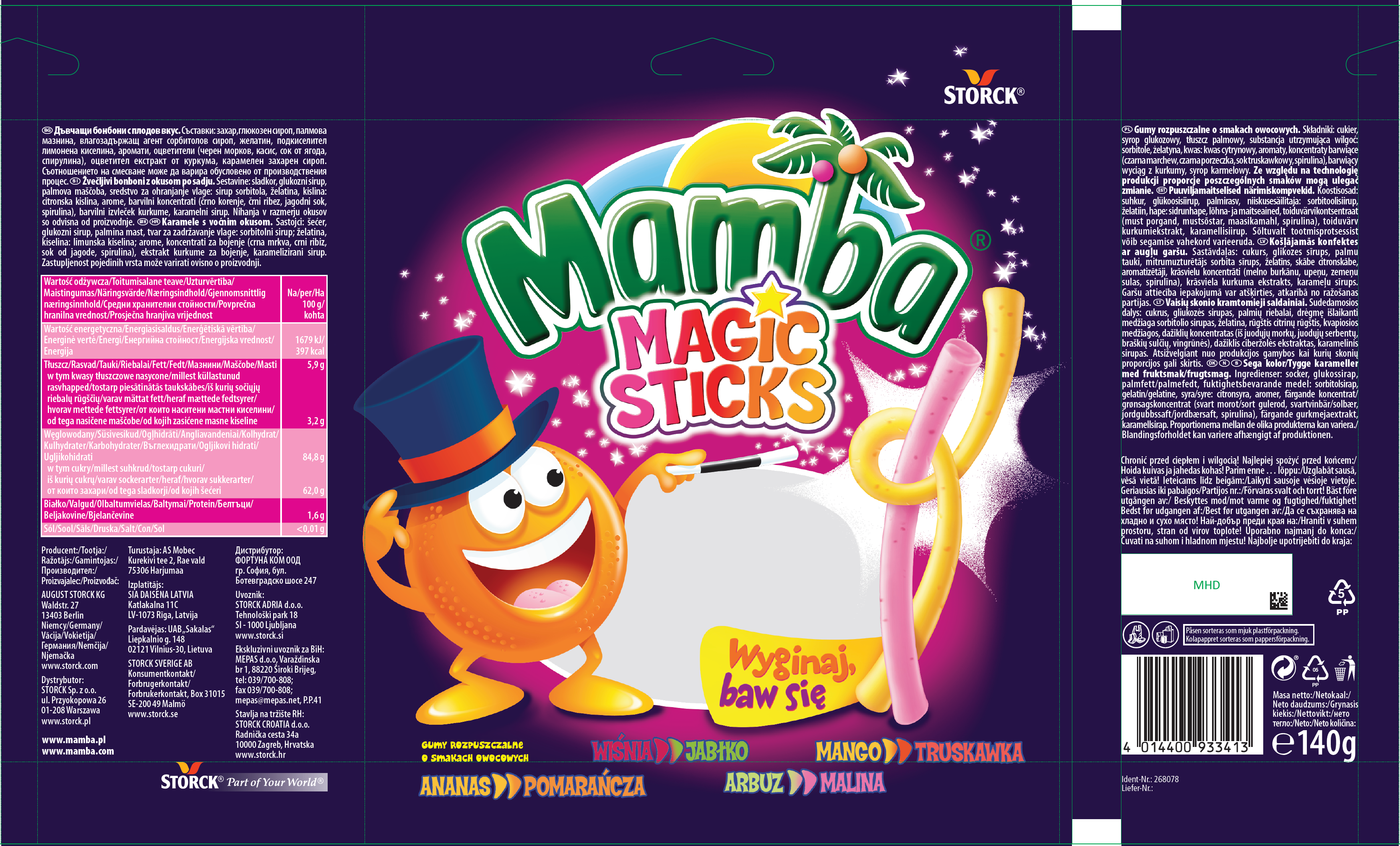 Czary mary, hokus pokus - z czterech smaków mamy osiem! Tak działa magia Mamby Magic Sticks. Smaki zmieniają się w trakcie żucia: wiśnia w jabłko, mango w truskawkę, ananas w pomarańczę, arbuz w malinę. Ale to nie wszystko - możesz ją rozciągać, wyginać i tworzyć nowe kształty. Spróbuj sam!