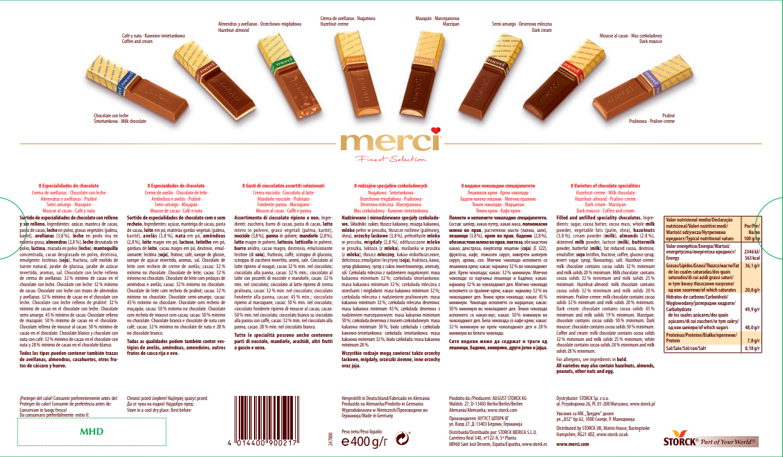 Merci to pojedynczo pakowane wykwintne czekoladki, 8 rodzajów czekoladek w jednej bombonierce. Merci Finest Selection jest unikalnym, czekoladowym prezentem, o wysokiej jakości i na każdą okazję.