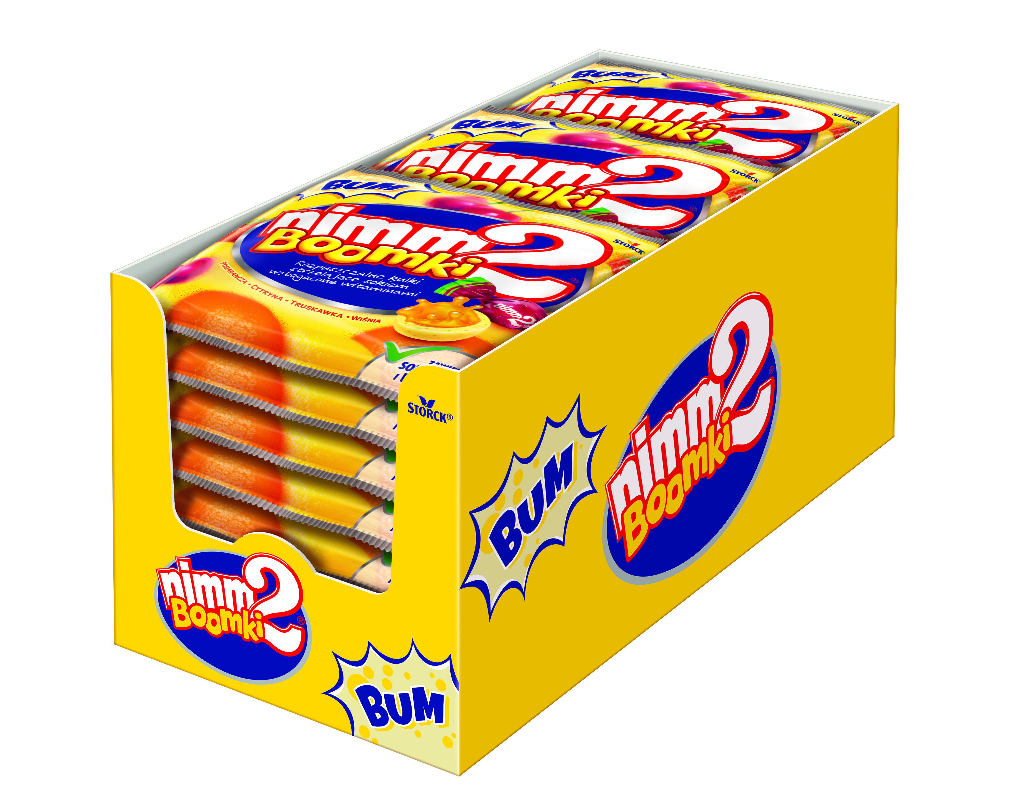 Nimm2 boomki – rozpuszczalne kulki strzelające sokiem wzbogacone witaminami. Wypełnione soczystym owocowym nadzieniem w wyśmienitych i uwielbianych przez dzieci smakach: pomarańczowym, cytrynowym, truskawkowym i wiśniowym.