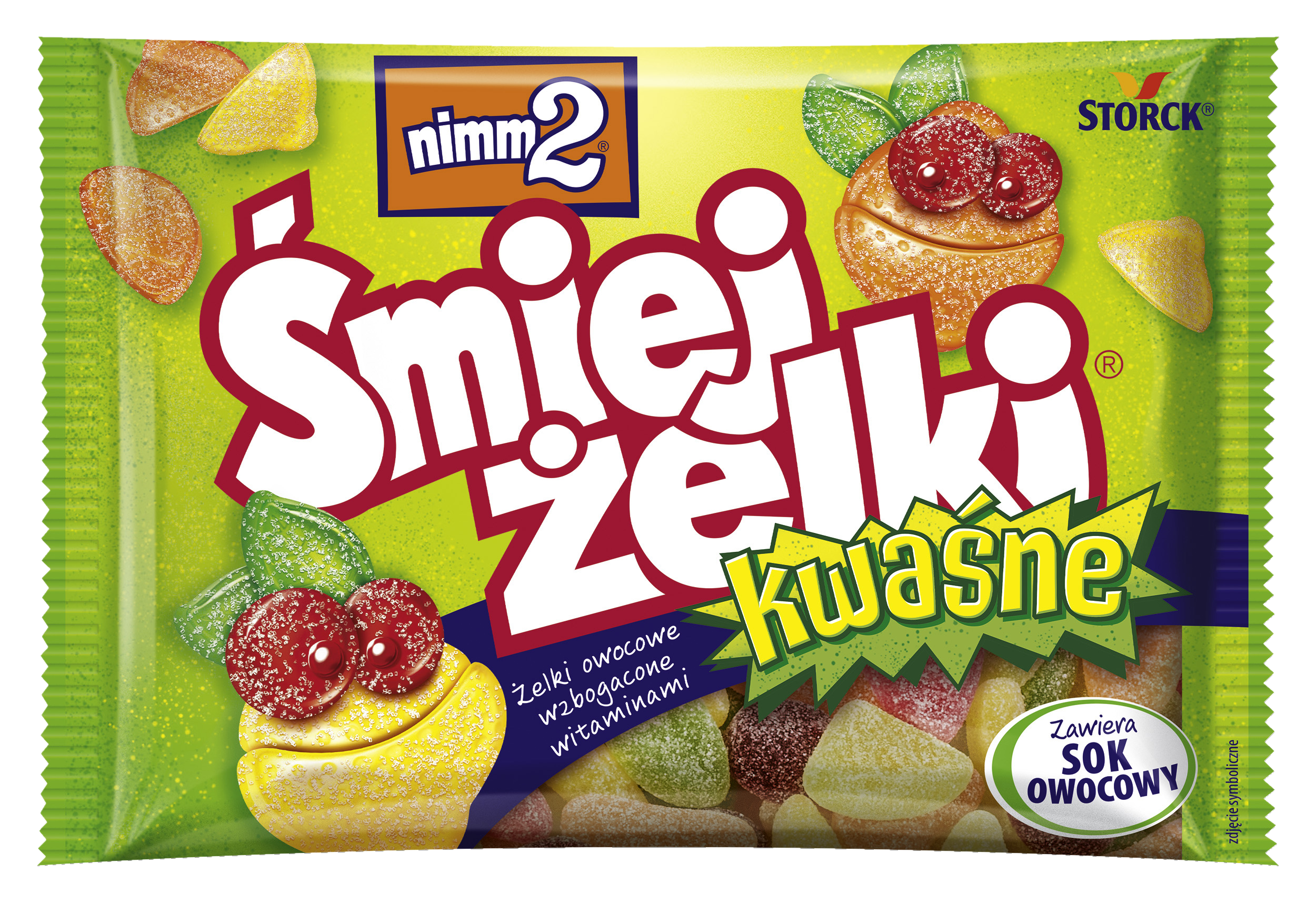 Nimm2 Śmiejżelki to żelki z sokiem owocowym wzbogacone witaminami. Występują w wariancie owocowym, kwaśnym, tropikalnym, jogurtowym i owocowo-jogurtowym. W każdej torebce znajduje sie wiele owocowych smaków w różnych kształtach.