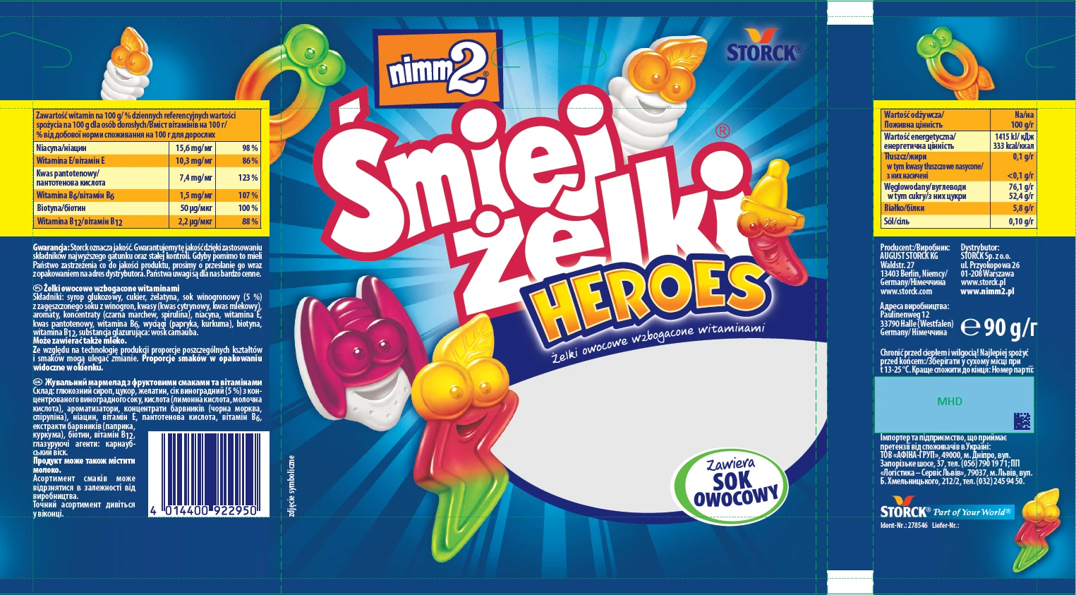 Pyszne żelki z dodatkiem soków owocowych, wzbogacone witaminami. Niezwykłe kształty zabawnych superbohaterów - gwarancja dobrej zabawy!