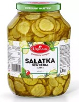 Idealne rozwiązanie dla zabieganych gospodyń domowych. Wystarczy wyjąć z opakowania i gotowe! Sałatka szwedzka, produkowana ze świeżego ogórka idealnie pasuje do dań obiadowych, a także hamburgerów i zapiekanek.